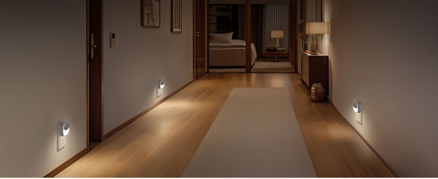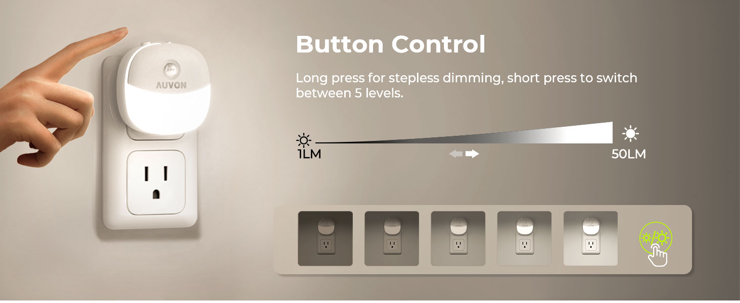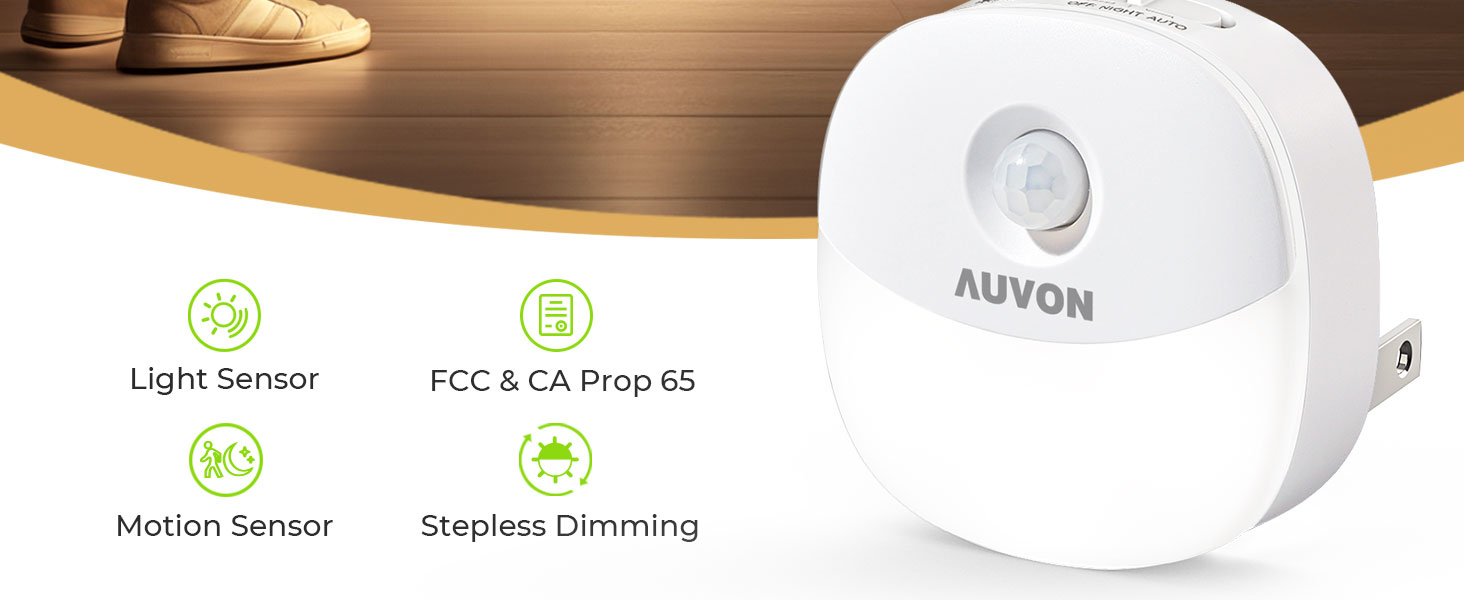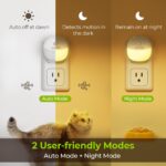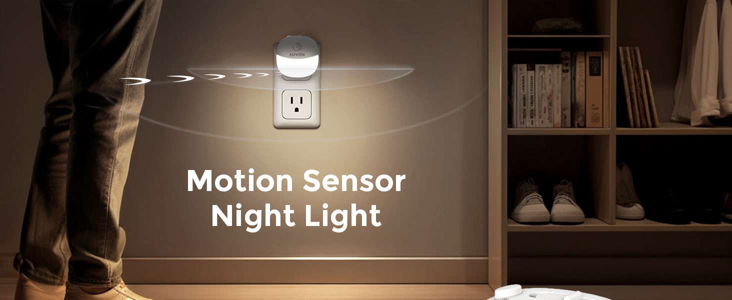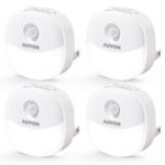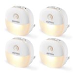 AUVON Plug in Night Light with Motion Sensor and Dusk to Dawn Sensor, Mini Cool White LED Nightlight with 1-50 lm Adjustable Brightness for Bathroom, Hallway, Stairs, Bedroom, Kitchen, 4 Packs